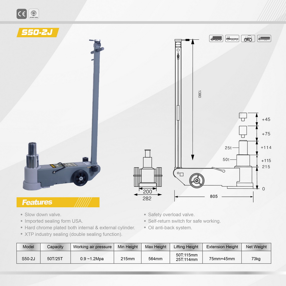 Home / Shop / Jacks / Truck, Bus & Tractor / 50 Tonne Two Stage Air Jack 50 Tonne Two Stage Air Jack€1,300.00 Capacity:50T/25T Working Air Pressure: 0.8-1.2MPa Net Weight:73kgs 50 Tonne Two Stage Air Jack quantity Add to cart Categories: Jacks, Truck, Bus & Tractor Reviews (0) Reviews There are no reviews yet. Only logged in customers who have purchased this product may leave a review. Related products 3T-C Compac 3 Tonne Trolley Jack €560.00 Add to cart 1.3T-HC Compac Low Entry High-Lift Rally Jack €525.00 Add to cart AXLE STAND 5 TON PA10 (Each) €140.00 Add to cart AXLE STAND 8 TON PA16 (Each) €150.00 Add to cart